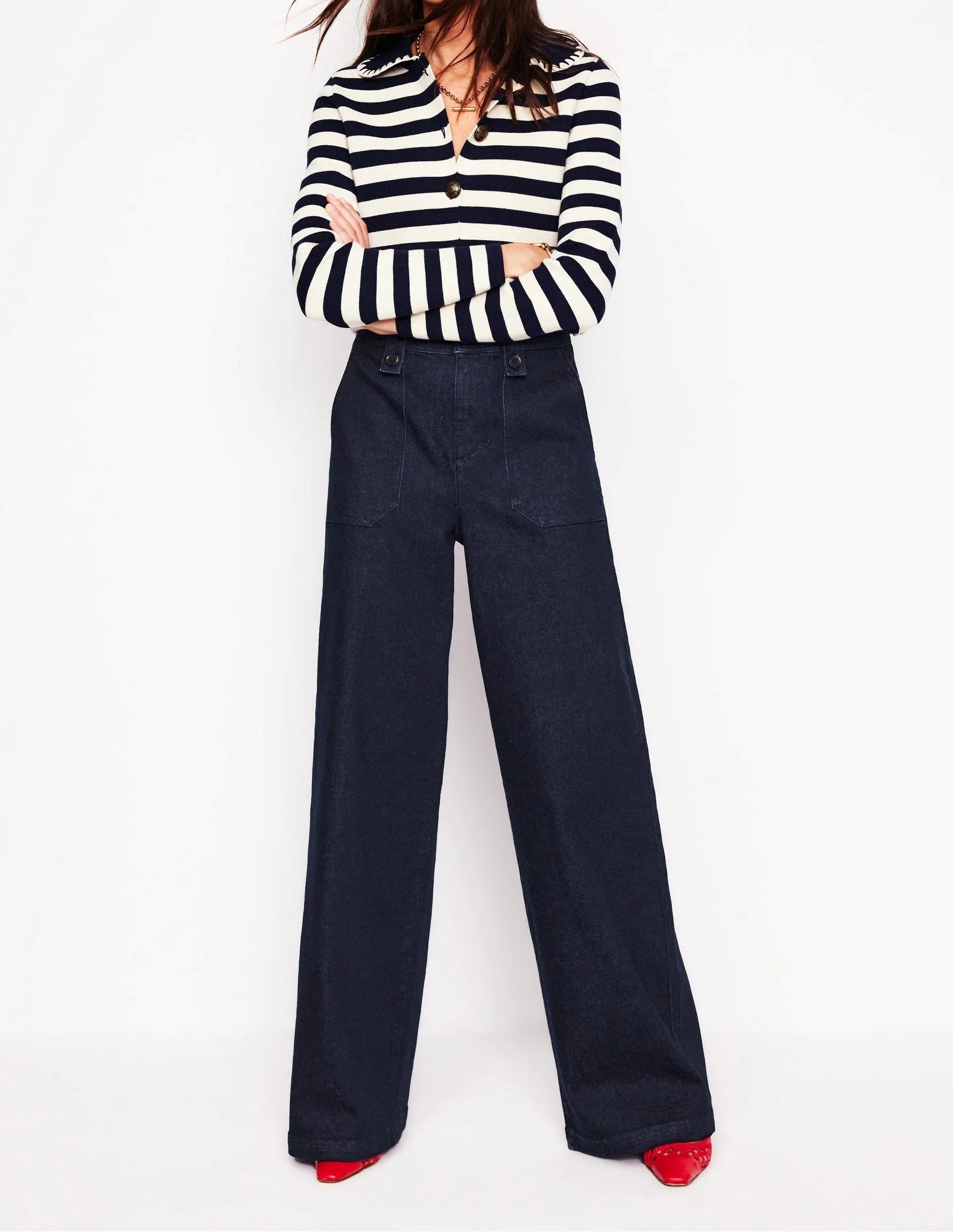 Navy Blue Wide - Leg Trousers